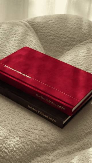 - Hardcover mit Cherry-Rot farbenem Samtbezug → Das Besondere an unserem Samt-Cover: Es trägt Charakter. Je nach Lichteinfall verändert sich die Tiefe und Oberfläche des Materials – ein lebendiges Spiel aus Eleganz und Struktur, das jedes Journal zu einem Unikat macht.